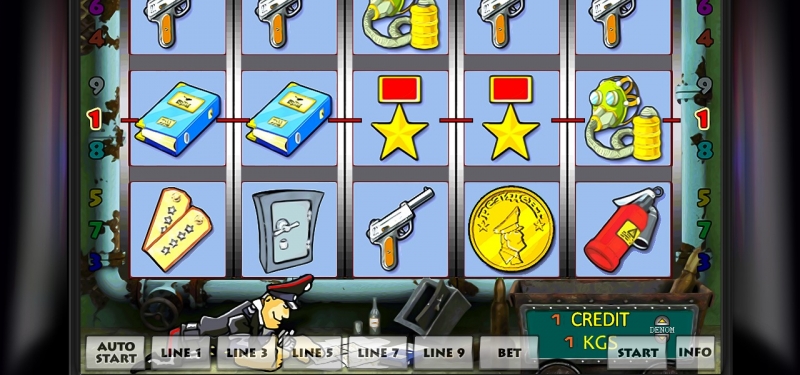 Цепочки, подлежащие оплате, формируются из тематических знаков, которые заполонили все игровое поле. Это изображения погон, медалей, сейфов, оружия, пушки и прочее.