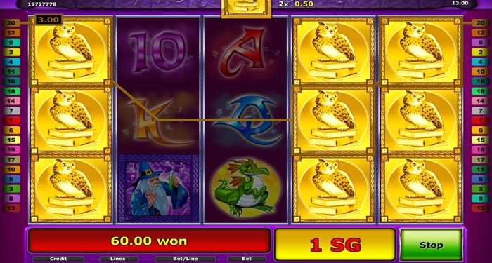 Базовыми элементами видео слота выступают: сказочный волшебник, сова, дракон, химические принадлежности, колба с зеленым отваром и др. Дополнительными знаками на поле считаются игральные карты.